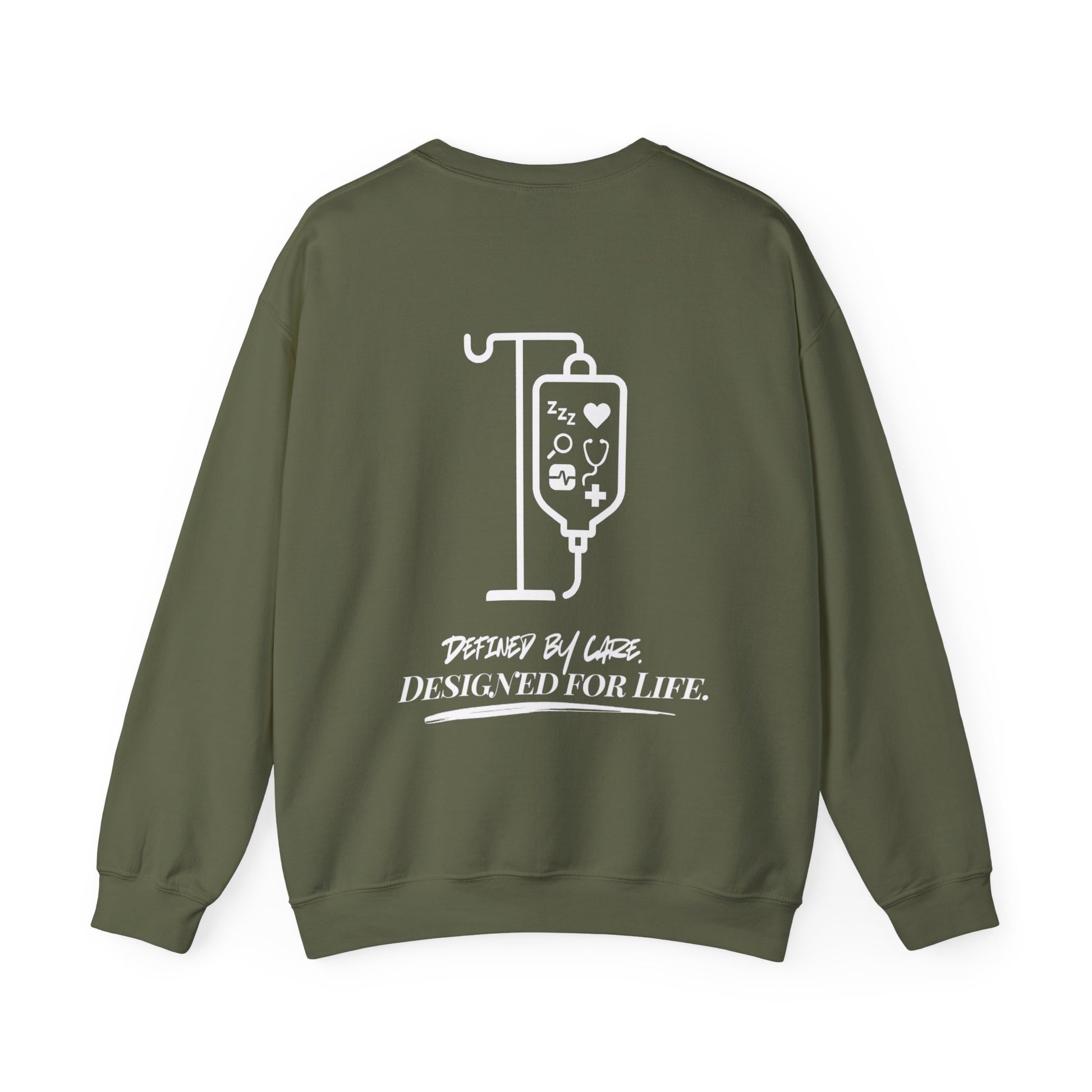 The IV Bag Legacy Unisex Sweater features a logo outline filled with medical icons that celebrating recovery, vigilance, and post-procedure care. Each piece in the collection carries the mark of our slogan, "Defined by Care. Designed for Life." -blending timeless style with the heart of healthcare. Infusion Nurses, Oncology Techs, Chemotherapy RNs, IV Specialists, and every pro ensuring care flows just right.