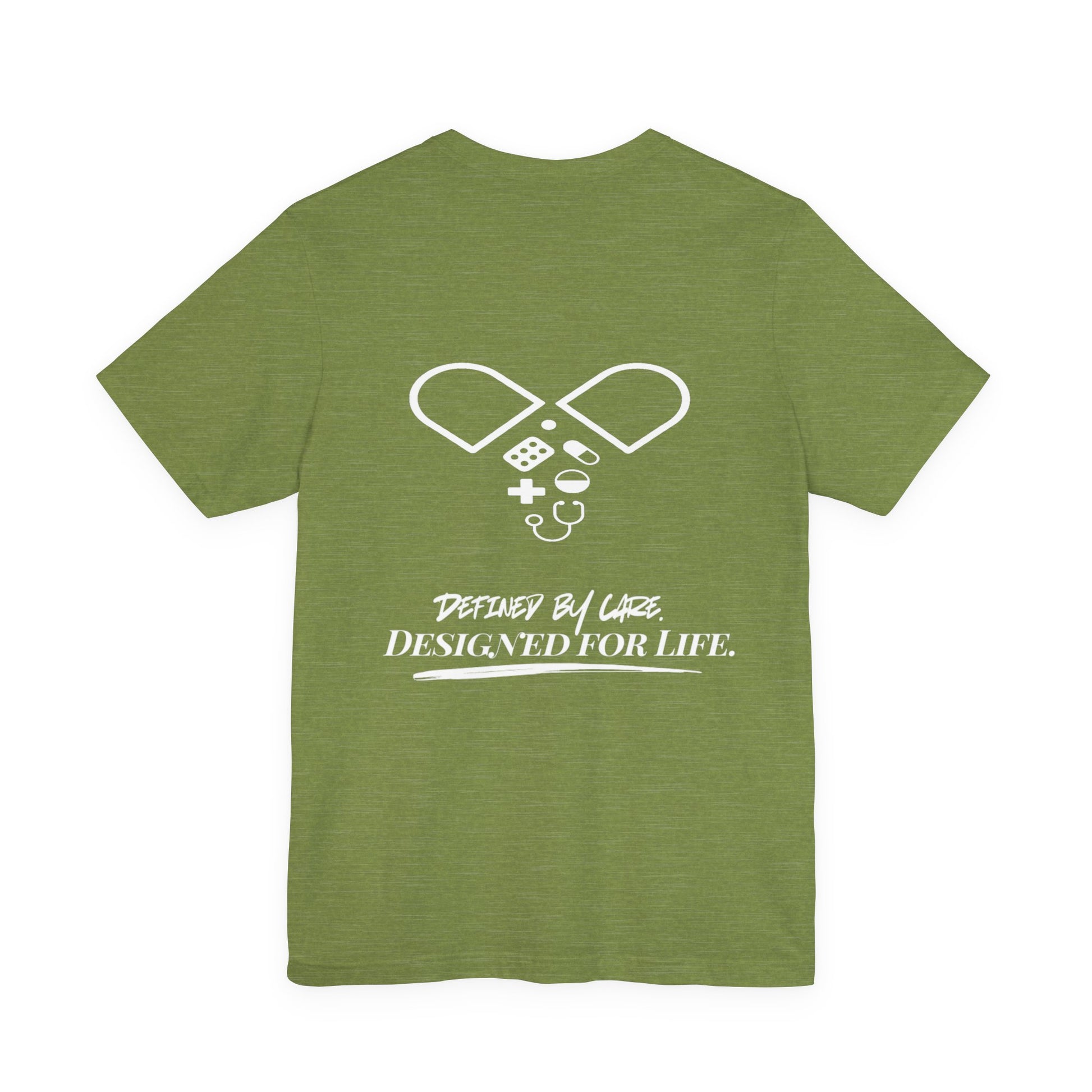 The Pill Capsule Unisex Shirt features a logo outline filled with medical icons symbolizing strength, car, and science of healing through medicine. Each piece in the collection carries the mark of our slogan, "Defined by Care. Designed for Life." -blending timeless style with the heart of healthcare. Pharmacists, Pharmacy Techs, Med Nurses/Techs, Clinical Pharmacologists, and every healthcare pro ensuring patients get the right dose at the right time.
