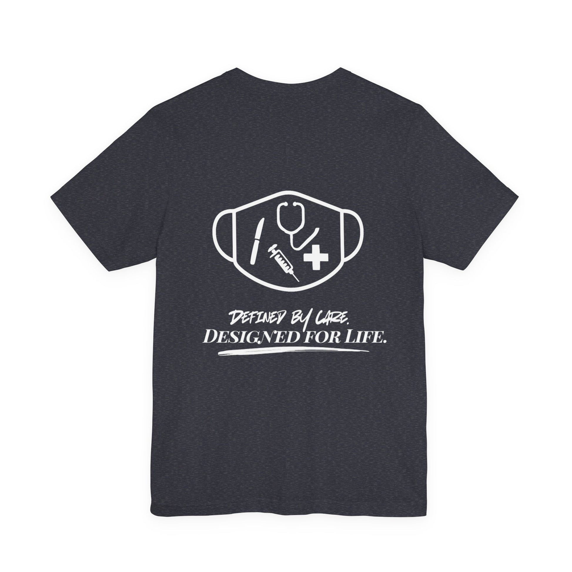 The Surgical Mask Shirt features a logo outline filled with medical icons symbolizing precision, teamwork, and life-saving interventions. Each piece in the collection carries the mark of our slogan, "Defined by Care. Designed for Life." -blending timeless style with the heart of healthcare. OR Nurses, Surgical Techs, Scrub Nurses, Circulators, Infection Control Teams, Anesthesia Providers, Med Surg, and every professional who protects, prevents, and performs under pressure.