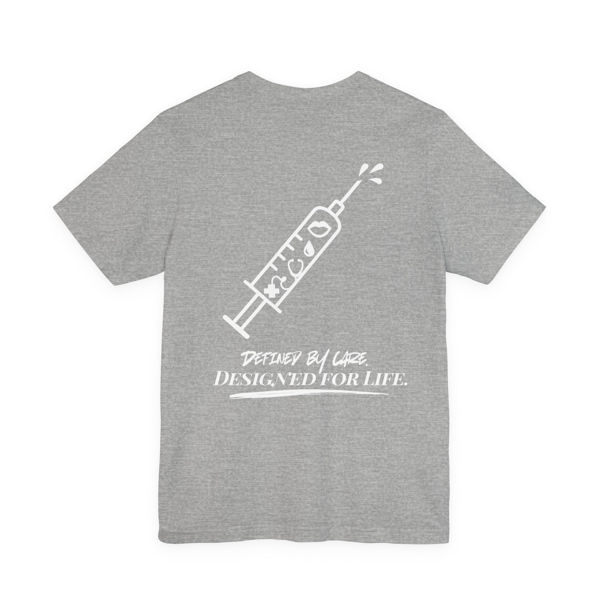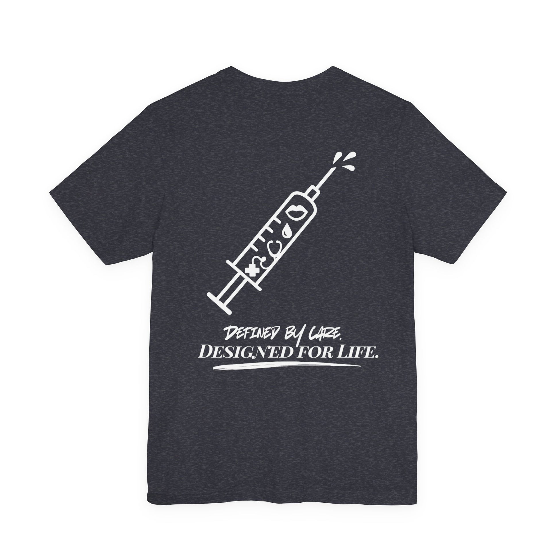The Syringe Legacy Unisex Shirt features a logo outline filled with medical icons blending precision medicine with aesthetics and artistry. Each piece in the collection carries the mark of our slogan, "Defined by Care. Designed for Life." -blending timeless style with the heart of healthcare. Nurses, Cosmetic Injectors, Estheticians, Phlebotomists, Medical Assistants, Surgical Techs, IV Nurses, Anesthesia Providers, CRNAs, and every pro who delivers care with precision.
