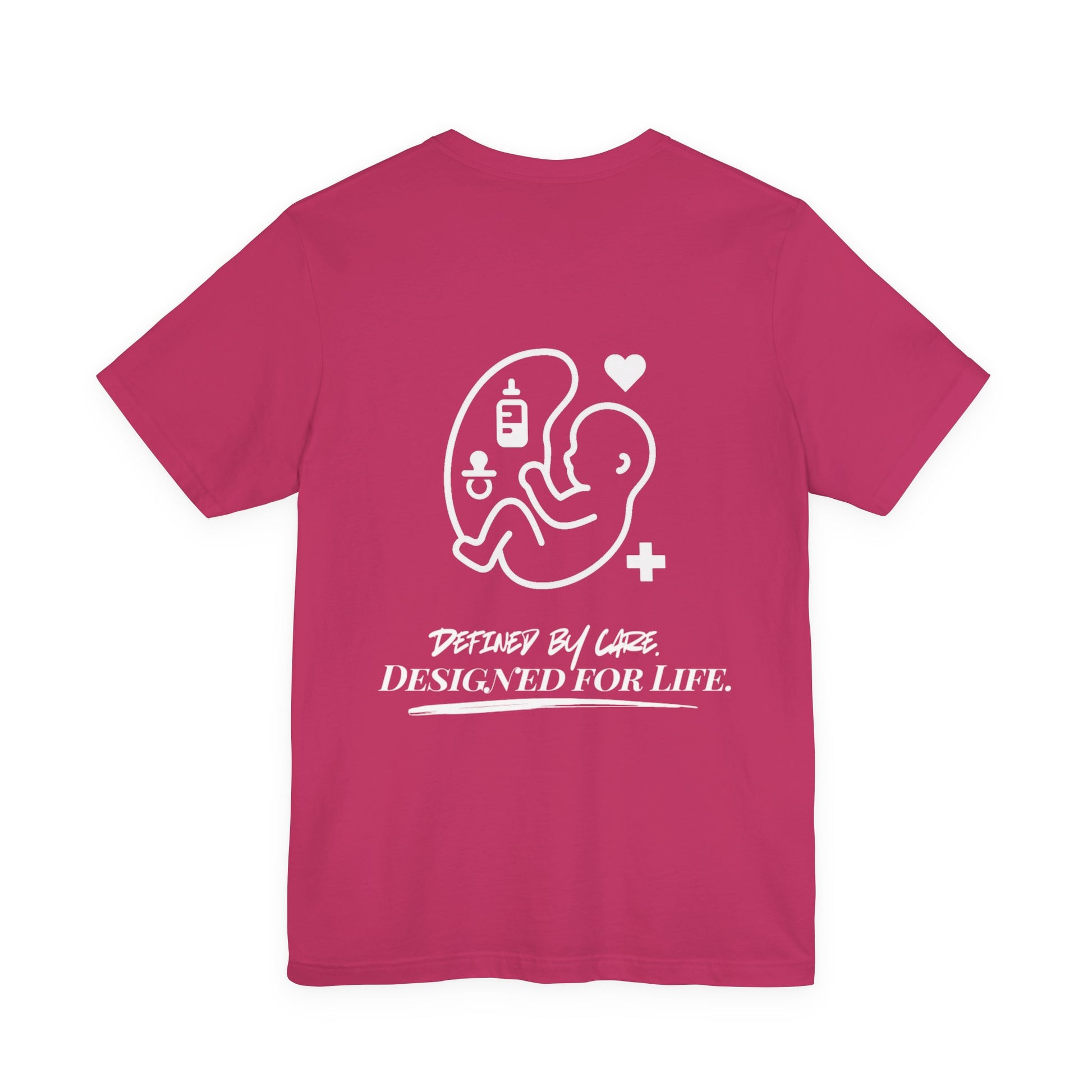 The Baby Fetus Legacy Unisex Shirt features a logo outline filled with medical icons celebrating new beginnings and the professionals who nuture life from the very start. Each piece in the collection carries the mark of our slogan, "Defined by Care. Designed for Life." -blending timeless style with the heart of healthcare. OB Nurses, Labor & Delivery Teams, Midwives, Doulas, NICU Nurses, and every healthcare pro guiding life into the world.