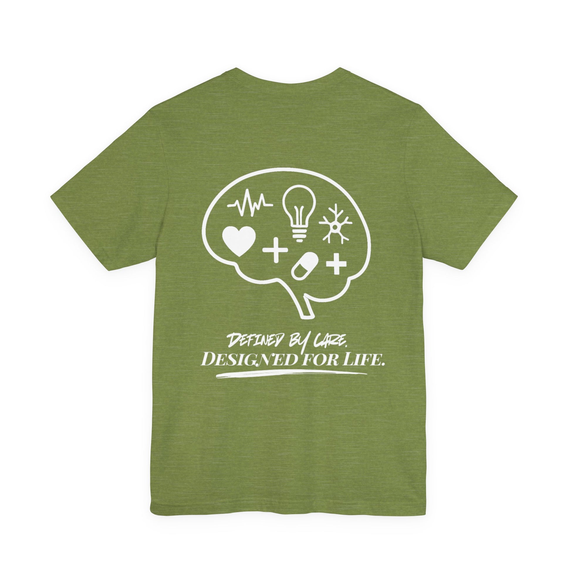 The Brain Legacy Unisex Shirt features a logo outline filled with medical icons symbolizing knowledge, resilience, and care. Each piece in the collection carries the mark of our slogan, "Defined by Care. Designed for Life." -blending timeless style with the heart of healthcare. Neurology Teams, Psych Nurses/Techs, Mental Health Therapists, Neuro Surgeons, and every professional caring for the mind as much as the body.
