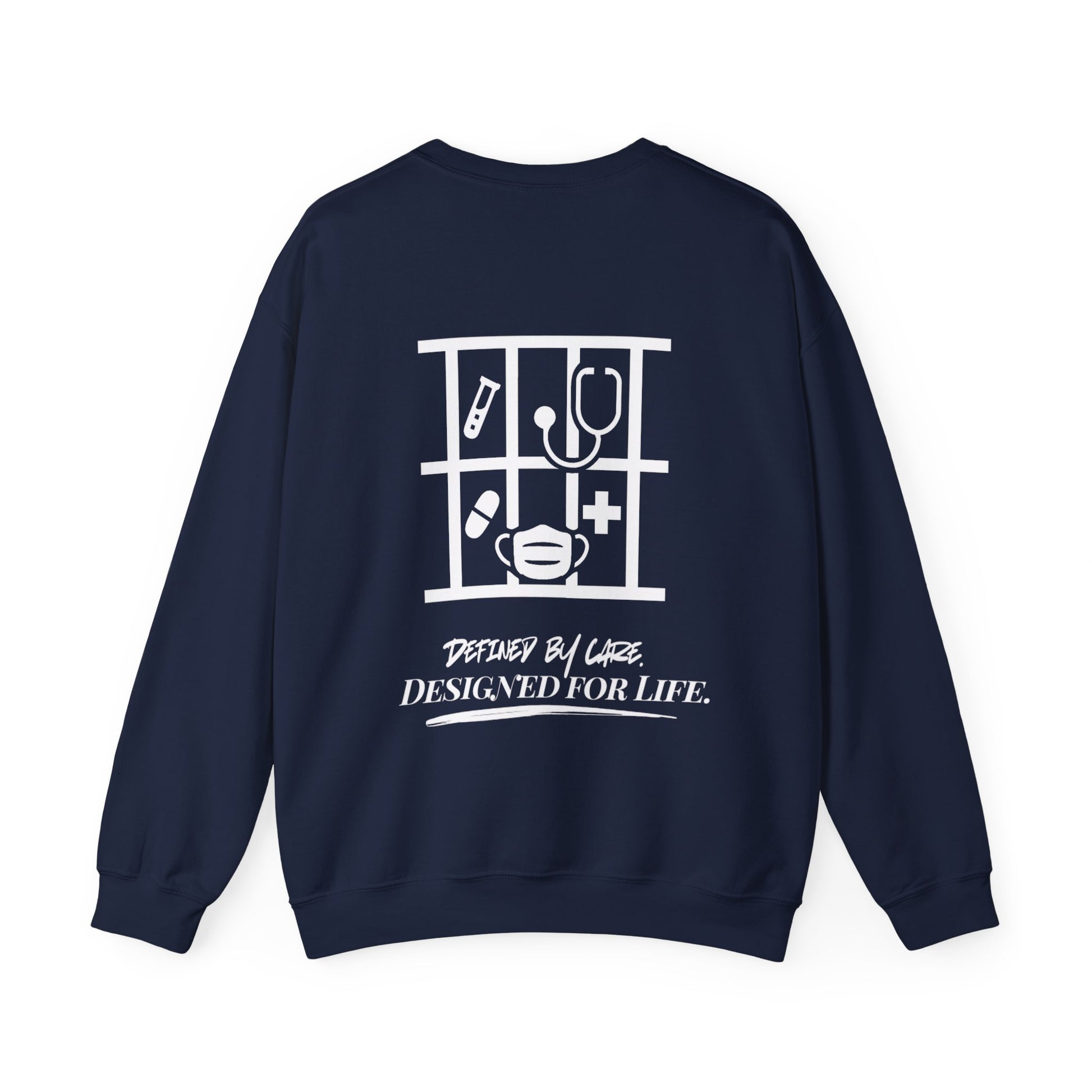 The Jail Bars Unisex Sweater features a logo outline filled with medical icons representing the balance of security and care. Each piece in the collection carries the mark of our slogan, "Defined by Care. Designed for Life." -blending timeless style with the heart of healthcare. Correctional Nurses, Mental Health Techs, Forensic Clinicians, and every healthcare pro working behind the walls to deliver care with dignity.